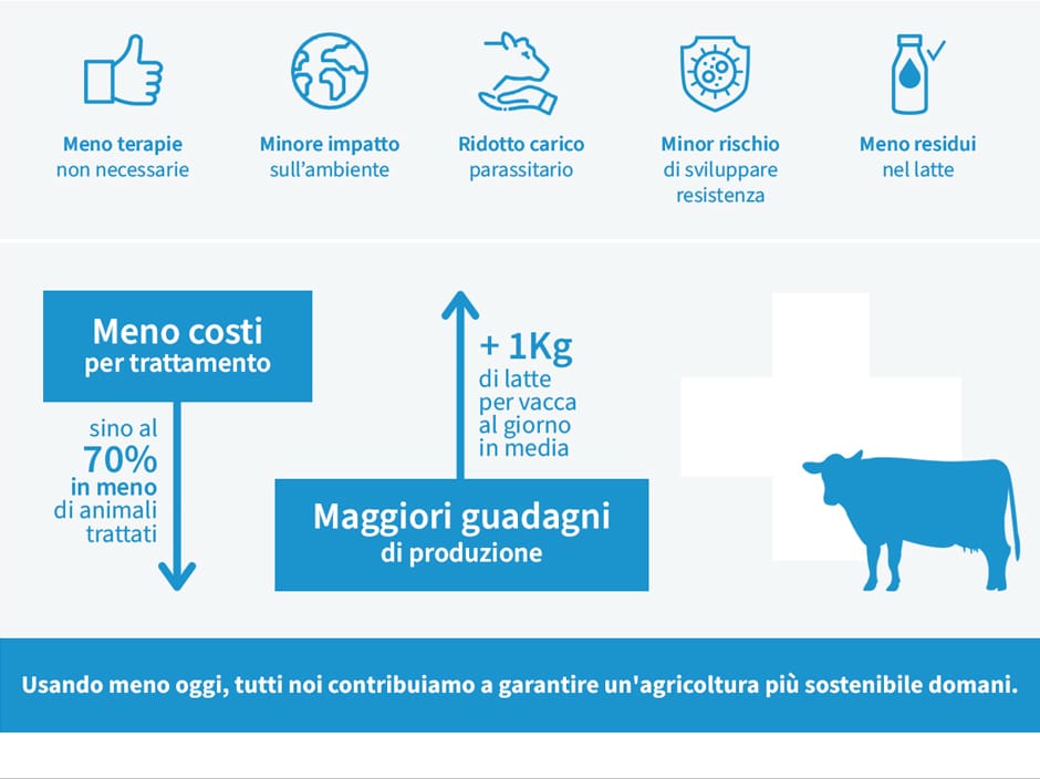 L’uso selettivo di una formulazione di eprinomectina iniettabile contribuisce alla protezione del benessere degli animali ed inoltre garantisce la sicurezza alimentare, riducendo lo sviluppo della resistenza e l'impatto sull'ambiente.